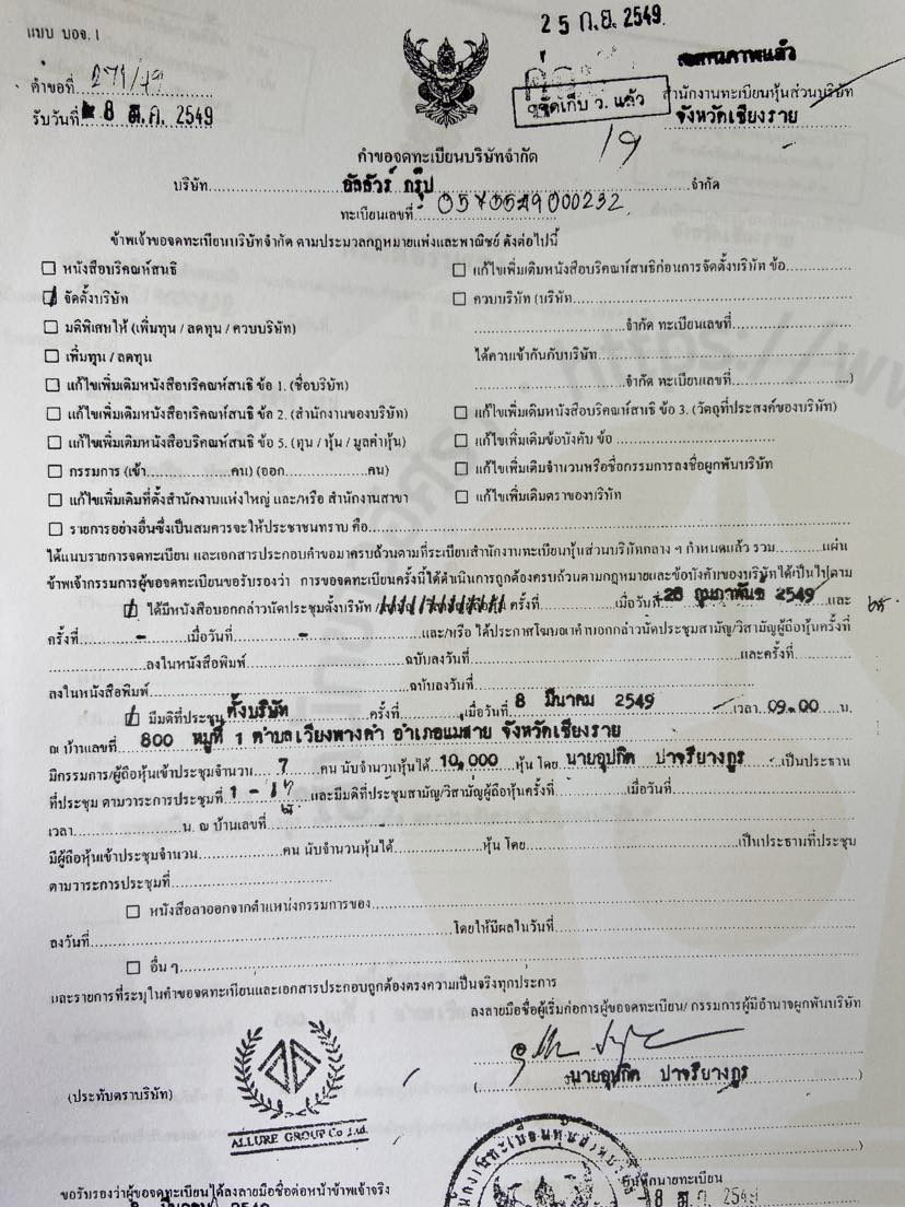 ต่อมาจดทะเบียนเปลี่ยนแปลง กรรมการ ที่ตั้ง และวัตถุประสงค์ หลายครั้ง
