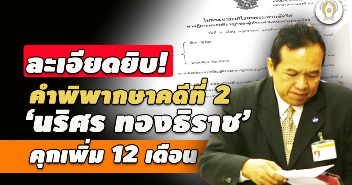 - โดนคดีที่สอง! ศาลฎีกาฯ จำคุก ‘นริศร ทองธิราช’ อีก 12 เดือน เสียบบัตรแทนกัน