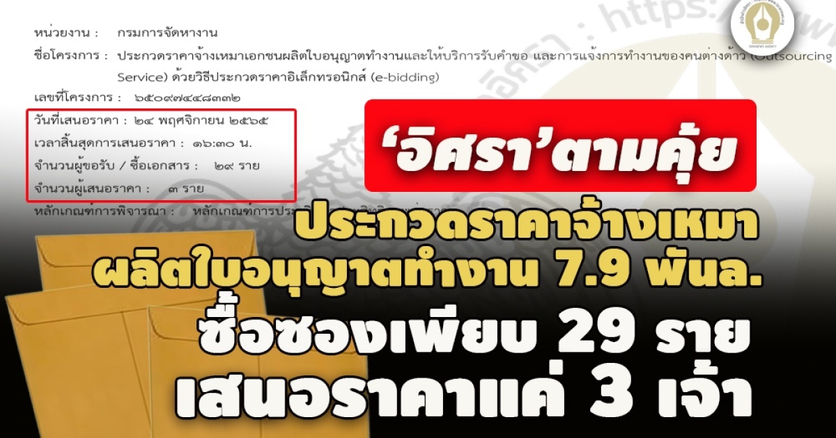 - ขอให้ทบทวนใหม่! เอกชนร้องสอบประกวดจ้างผลิตใบอนุญาตทำงาน7.9 พันล.ส่อไม่โปร่งใส-เอื้อปย.