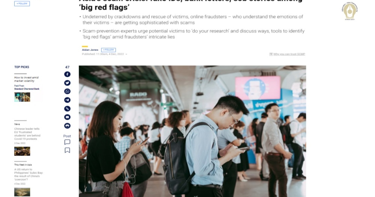 เรียบเรียงจาก:https://www.scmp.com/week-asia/people/article/3201878/asias-scam-crisis-fake-ids-bank-letters-sob-stories-among-big-red-flags