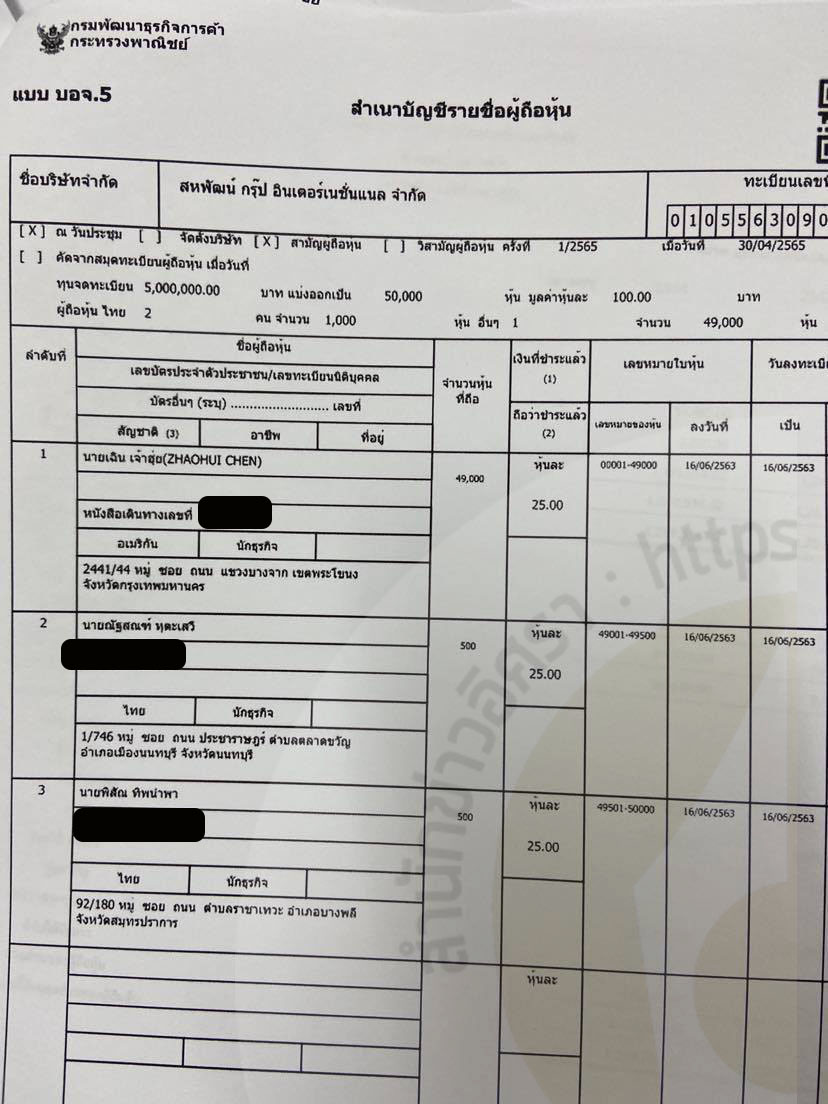 - เปิดข้อมูล บ.สเปซ พลัส คลับฯ คดีนอมินีทุนจีน ‘เฉิน เจ้าฮุ่ย’ พวก 3 ราย ถือหุ้น (17)