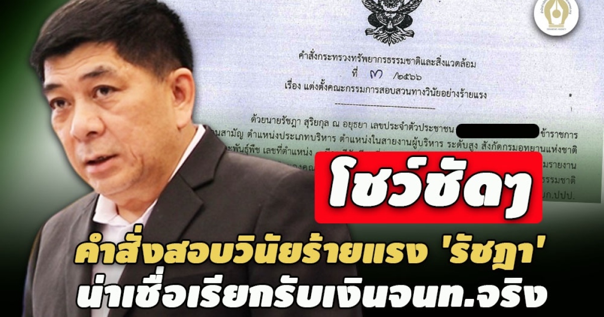 ต่อไปนี้ เป็นรายละเอียดในคำสั่ง กระทรวงทรัพยากรธรรมชาติและสิ่งแวดล้อม ที่ 3 /2566 ลงวันที่ 4 ม.ค.2566 เรื่อง แต่งตั้งคณะกรรมการสอบสวนทางวินัยอย่างร้ายแรง นายรัชฎา ในคดีนี้