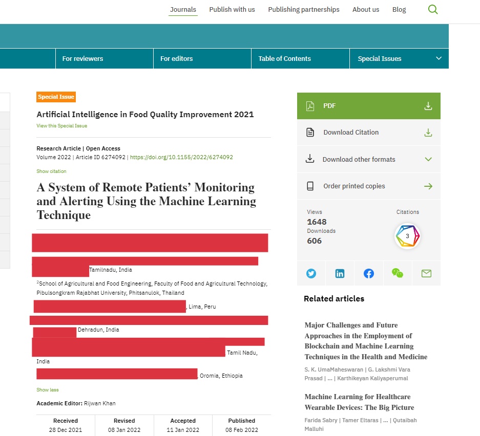 ทั้งหมดก็คือ ข้อมูลงานวิจัยของนายซี และนายดี จากมหาวิทยาลัยราชภัฏพิบูลสงคราม ที่สำนักข่าวอิศราพอจะสามารถสืบค้นเว็บไซต์ Hindawi ณ เวลานี้