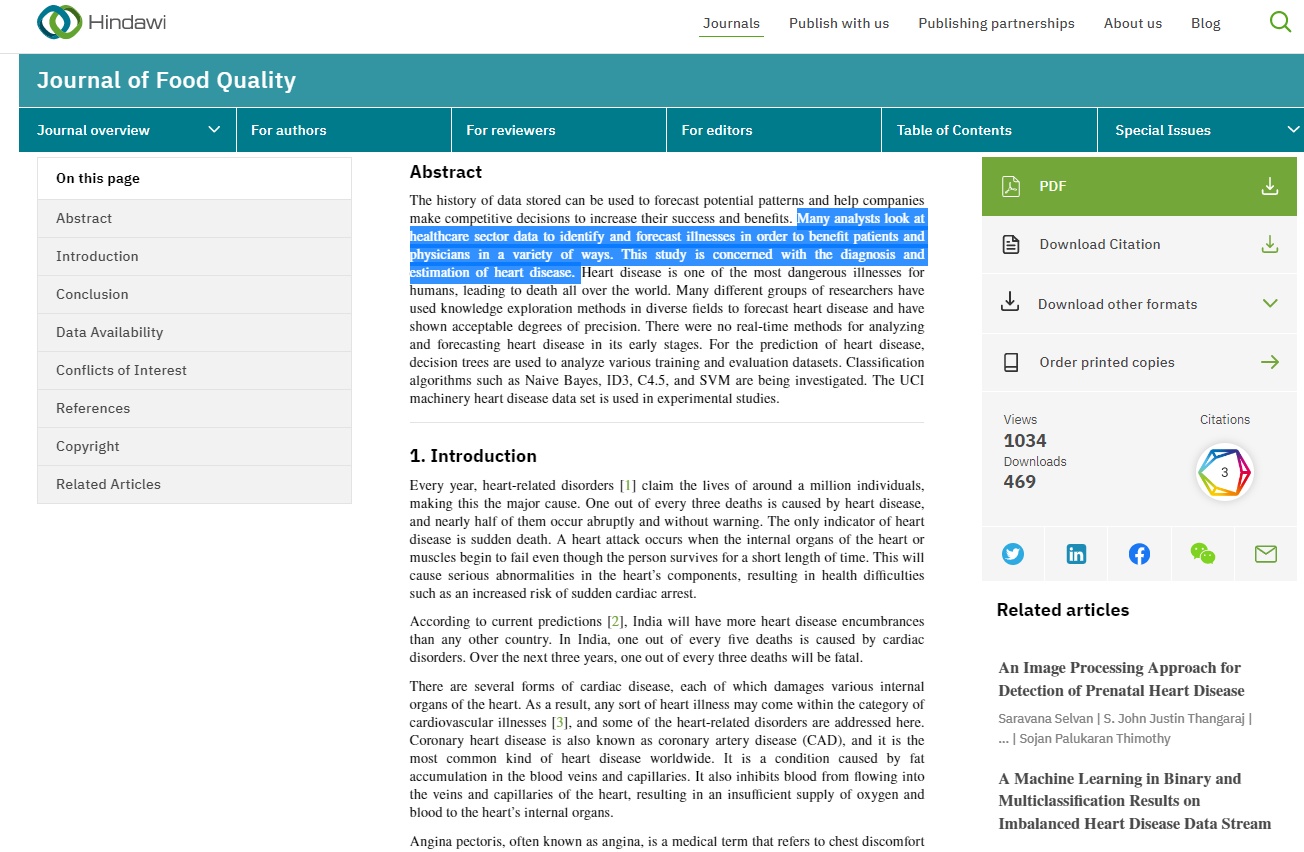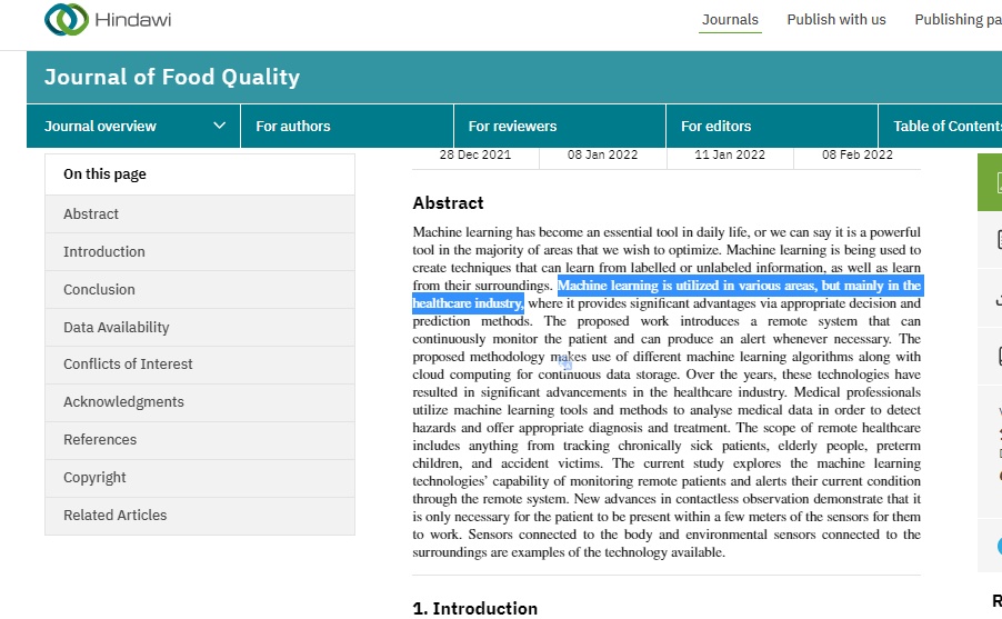 มีข้อสังเกตุประการหนึ่งว่าในประเภทของงานวิจัยระบุว่าเป็นวารสารเกี่ยวกับอาหาร แต่ว่าเนื้อหาในส่วนเกริ่นนำนั้นกลับระบุถึงการใช้การเรียนรู้ของเครื่องคอมพิวเตอร์กับอุตสาหกรรมทางการแพทย์