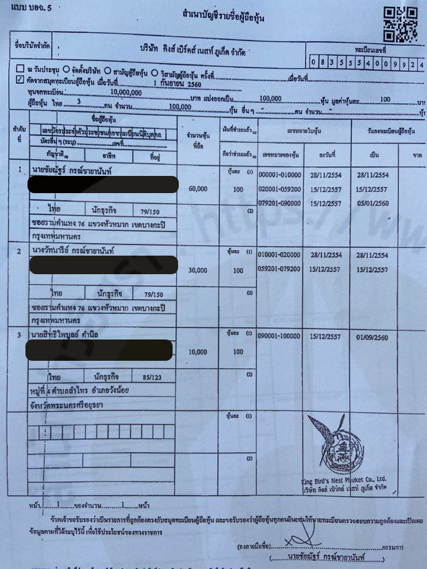 - เปิดข้อมูล บ.สเปซ พลัส คลับฯ คดีนอมินีทุนจีน‘เฉิน เจ้าฮุ่ย’ พวก 3 ราย ถือหุ้น(17)