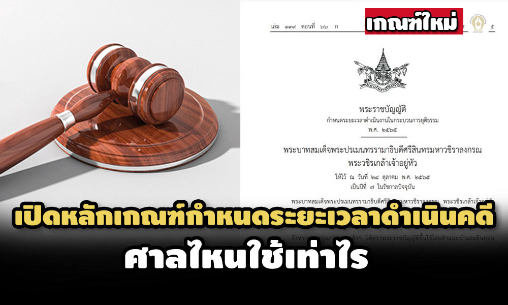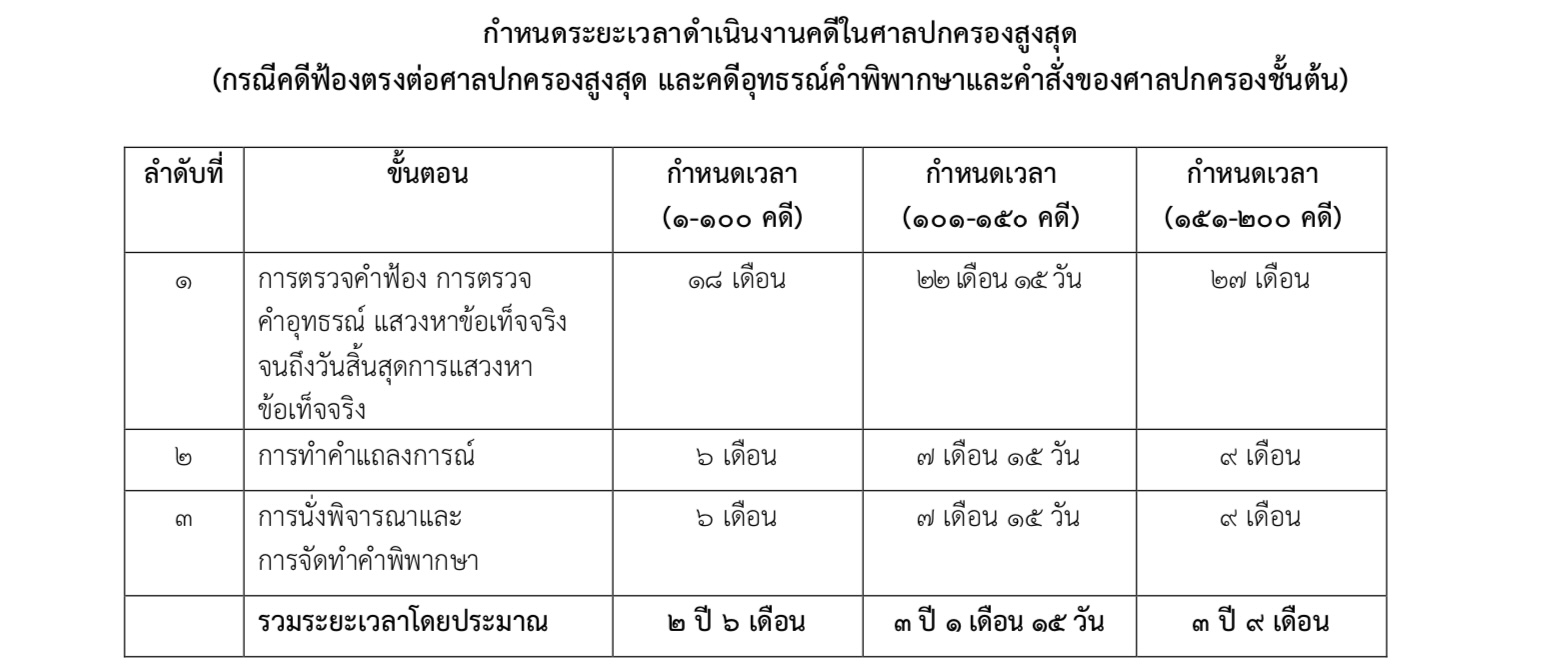 ศาลยุติธรรมได้ออกระเบียบราชการฝ่ายตุลาการศาลยุติธรรม ว่าด้วยการกำหนดระยะเวลาการพิจารณาพิพากษาคดีของศาลยุติธรรม พ.ศ. 2566