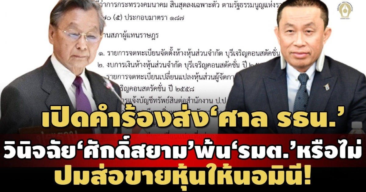 โดยที่รัฐธรรมนูญแห่งราชอาณาจักรไทย พ.ศ.2560 มาตรา 187 ประกอบพระราชบัญญัติการจัดการหุ้นส่วนและหุ้นของรัฐมนตรี พ.ศ.2543 ที่ห้ามรัฐมนตรีเป็นหุ้นส่วนหรือผู้ถือหุ้นในห้างหุ้นส่วนหรือบริษัทหรือคงไว้ซึ่งความเป็นหุ้นส่วนหรือผู้ถือหุ้นในห้างหุ้นส่วนหรือบริษัทตามจำนวนที่กำหนดไว้ นั้น