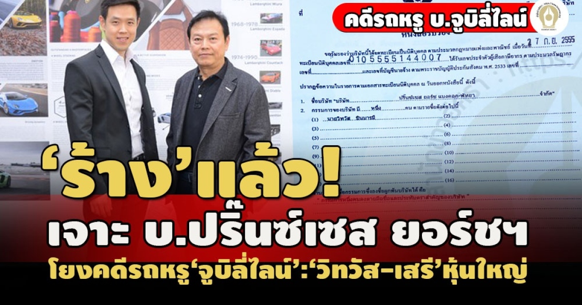 ไขสำนวนคดีรถหรู ลัมโบร์กินี บ.จูบิลี่ไลน์ กับพวก ก่อน อสส. ชี้ขาดสั่งฟ้อง‘เสรี รักวิทย์-ชินบารมี’ (ตอน 6 ) : เจาะ บริษัท ปริ๊นซ์เซส ยอร์ช แบงคอก – พัทยา พบชื่อ ‘วิทวัส’ลูกชาย กก. ถือหุ้นใหญ่ สถานะล่าสุดถูกนายทะเบียนขีดชื่อเป็นกิจการร้าง