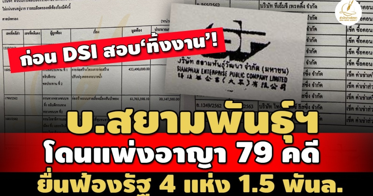 เปิดข้อมูลหมายเหตุประกอบงบฯ บ.สยามพันธุ์วัฒนา ก่อนถูกดีเอสไอสอบปมทิ้งงานรับเหมา 5 โครงการรัฐ เสียหาย 2.5 พันล. ระบุถูกบุคคล-นิติบุคคล ฟ้องแพ่ง อาญา 79 คดี 417.2 ล. ขณะเดียวยื่นฟ้องหน่วยงานราชการ 4 แห่ง ศาลปกครอง 11 คดี มูลฟ้อง 1,553.9 ล. โดนหน่วยงานเรียกค่าเสียหาย 983.5 ล.