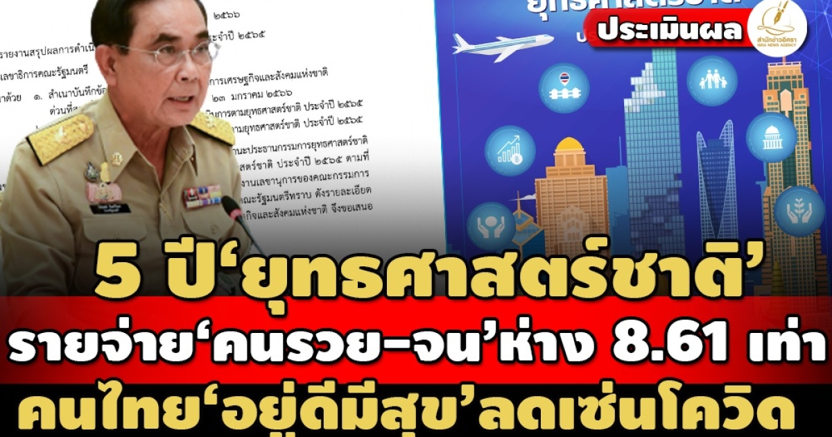 เหล่านี้เป็นสรุปรายงาน ‘การประเมินผลการพัฒนาตามเป้าหมายภาพรวมของยุทธศาสตร์ชาติ’ ใน ‘6 มิติ’ ภายใต้การดำเนินการตามแผนยุทธศาสตร์ชาติ 20 ปี ( พ.ศ.2561-2580) ซึ่งพบว่าดัชนีชี้วัดหลายตัว ‘ลดลง’ โดยเฉพาะความอยู่ดีมีสุขของคนไทย และการกระจายรายได้ ขณะที่ความเหลื่อมล้ำของคนรวยและคนจน ‘ค่อนข้างคงที่’