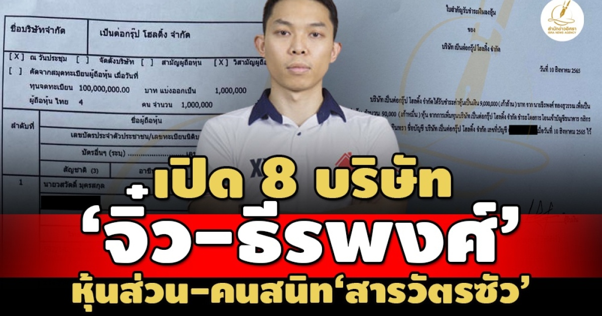 - เปิดฐานธุรกิจ‘สารวัตรซัว’ถือหุ้น กก. 9 บริษัท ‘ในหัว กรุ๊ป – เป็นต่อ โฮลดิ้ง’ทุน 300 ล.