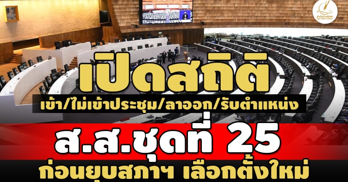 "...ล่าสุด สำนักข่าวอิศรา ได้รวบรวมข้อมูลทางสถิติการเข้าประชุมสภาผู้แทนราษฎร ของ ส.ส.ชุดที่ 25 นับตั้งแต่วันที่ 25 พ.ค. 2562 จนถึงวันที่ 1ก.พ. 2566 คิดเป็นจำนวนวันประชุม 269 วัน จากฐานข้อมูลสำนักบริหารงานกลาง กลุ่มงานข้อมูลข่าวสาร ของ สำนักงานเลขาธิการสภาผู้แทนราษฎร โดยแบ่งหัวเรื่อง ส.ส.ที่เข้าประชุมน้อยที่สุด , ส.ส.ที่เข้าประชุมไม่ถึง 100 วัน , ส.ส.ที่มาประชุมด้วยจำนวนวันสูงสุด และ ส.ส.ที่เพิ่งเข้ารับตำแหน่งหลังจากวันที่ 1. ก.พ. 2566..."