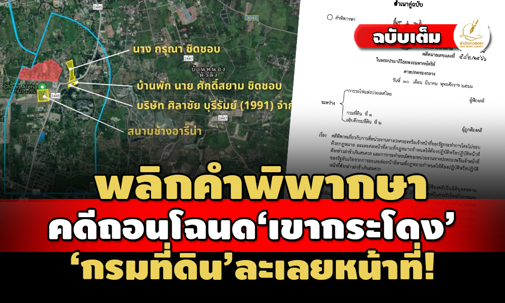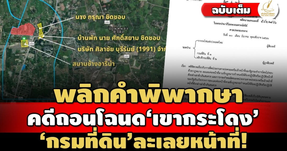 ยันไม่ละเลยเพิกเฉย! ‘กรมที่ดิน’ลุ้น‘ศาลปค.กลาง’ตัดสินคดีถอนโฉนด‘เขากระโดง’ 30 มี.ค.นี้