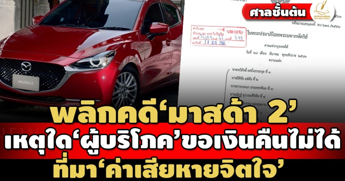ฉบับเต็ม : คำพิพากษา คดีหมายเลขดำที่ ผบ 347/2561 คดีหมายเลขแดงที่ ผบ 238/2566 คดี mazda2 ที่มา : สภาองค์กรของผู้บริโภค