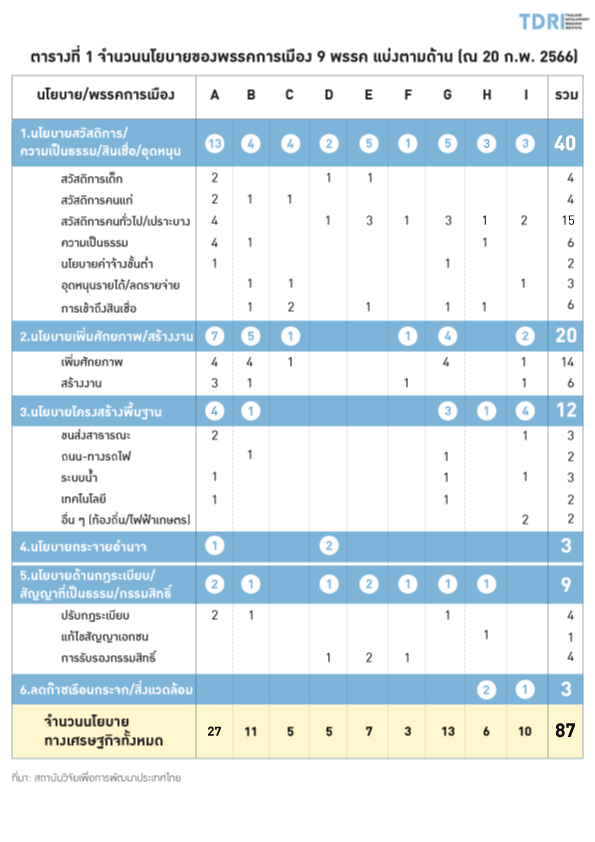 (ที่มา : ข้อสังเกตและข้อห่วงใยต่อนโยบายด้านเศรษฐกิจและสังคมของพรรคการเมืองในการเลือกตั้งทั่วไปปี 2566 ของ TDRI)