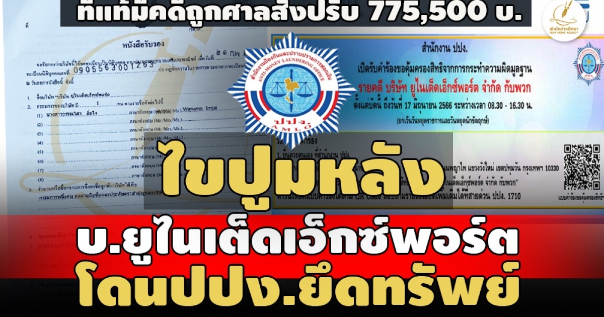 เปิดปูมหลัง บ.ยูไนเต็ดเอ็กซ์พอร์ต ก่อนโดน ปปง.สั่งยึดทรัพย์ พบจดทะเบียนจัดตั้งใน อ.ระโนด จ.สงขลา ขายส่งอาหารแช่แข็ง สาวสุรินทร์ กก. ถือหุ้นใหญ่ เคยถูกศาลอาญาพิพากษาปรับเงิน 775,500 บาทเมื่อเดือน มี.ค. 2565 ยังไม่ชำระ สำนักงานอัยการพิเศษฝ่ายการบังคับคดี 3 รับดำเนินการ สอบยึด-อายัดทรัพย์