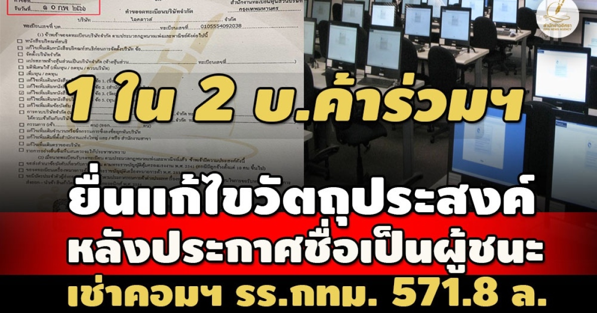 เป็นใคร? พลิกปูมกลุ่มกิจการค้าร่วมเอ็นแอนด์ไอ คู่สัญญาเช่าระบบคอมพิวเตอร์โรงเรียน สังกัดกรุงเทพมหานคร 437 แห่ง 598 ห้อง 571.8 ล. พบข้อสังเกต 1 ใน 2 บ.ยื่นจดทะเบียนแก้ไขเพิ่มเติมวัตถุประสงค์ หลังประกาศชื่อเป็นผู้ชนะกว่า 1 เดือน ?