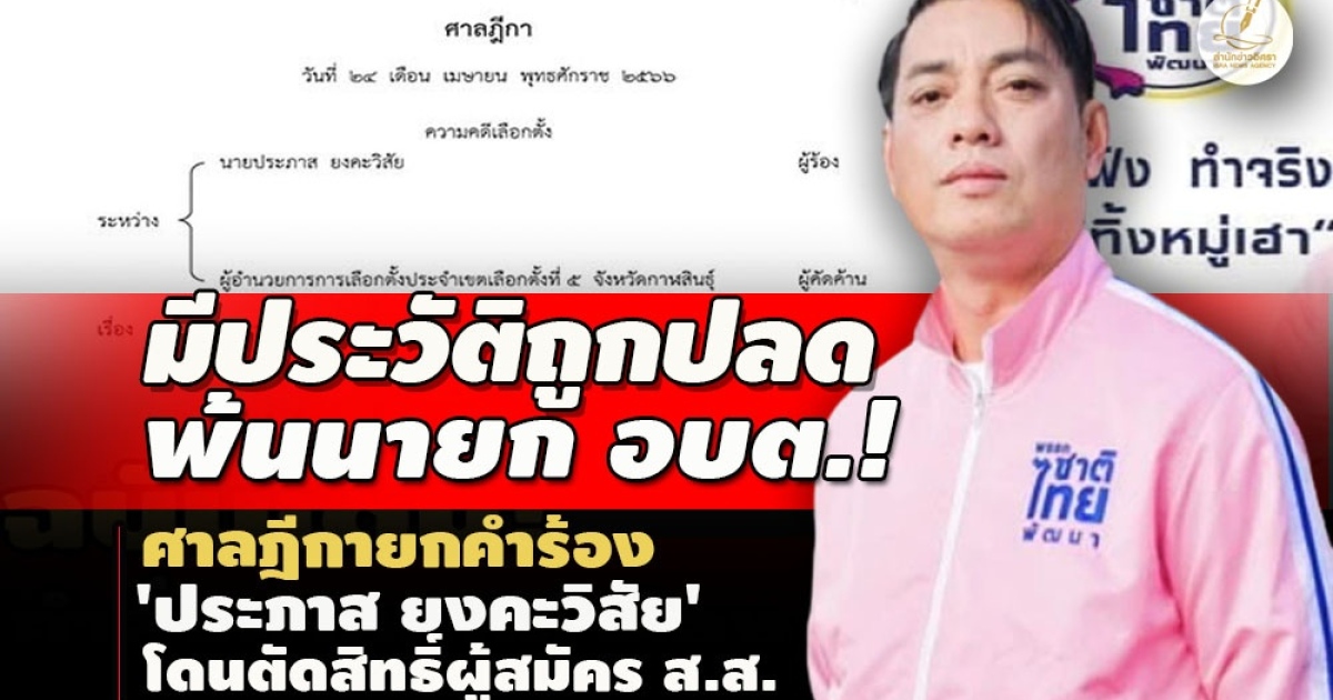 เปิดคำพิพากษาศาลฎีกา ยกคำร้อง คดี 'ประภาส ยงคะวิสัย' ผู้สมัคร ส.ส.เขต 5 จ.กาฬสินธุ์ พรรคชาติไทยพัฒนา โดน กกต. ตัดสิทธิ์ ไม่ประกาศชื่อเป็นผู้รับสมัครฯ เหตุมีประวัติถูกสั่งให้พ้นจากตำแหน่งนายก อบต.สงเปลือย ประพฤติมิชอบ-ละเว้นการปฏิบัติหน้าที่ เข้าลักษณะต้องห้ามไม่ให้ลงเลือกตั้ง ชอบแล้ว