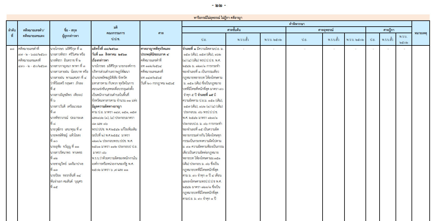 ส่วน นางสาวพัชรา ศรีวิเศษ หรือนางพัชรา อินทราช จำเลยที่ 2 , นางสาวกาญจนา พาหา จำเลยที่ 3 , นางสาวสายฝน น้อยบาท หรือ นางสายฝน พานแสนชา ที่ 4, ว่าที่ร้อยตรีกฤษดา ภักละ จำเลยที่ 5 , นางสาวอัญชลีพร เทียงเป จำเลยที่ 6 , นางสาววันดี เครือแวงมล จำเลยที่ 7 , นางพัชราภรณ์ ปะมาระเต จำเลยที่ 8 , นายวุฒิกร เสนาคุณ จำเลยที่ 9 , นายพงษ์พิชญ์ แห้วไธสง จำเลยที่ 10, นายอุทัย ขวัญนู จำเลยที่ 11 , นางสาวรัตนาพร ทาเพชร จำเลยที่ 12, นายชาญวิทย์ มะธิมาปาเข จำเลยที่ 13, นายปิยะ ขจรกลิ่น จำเลยที่ 14 , นางสมจิตร บุญศร หรือรัตนพลที จำเลยที่ 20 , นายวีระพงษ์ ไชยสงคราม จำเลยที่ 21 , นางสมถวิล มธิศิริกุล จำเลยที่ 22 ให้ยกฟ้อง