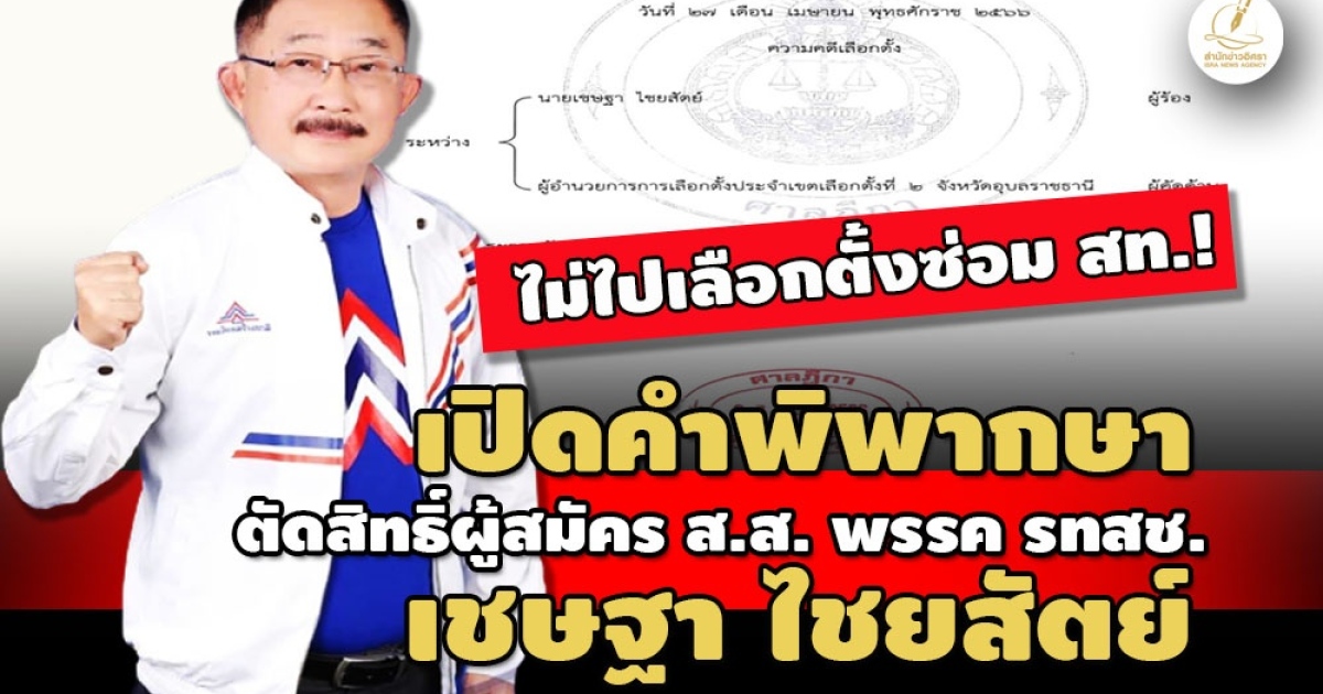 อีกกรณี! เปิดคำพิพากษาศาลฎีกา ยกคำร้อง คดี เชษฐา ไชยสัตย์ ผู้สมัคร ส.ส. เขต 2 อุบลราชธานี พรรครวมไทยรักษาชาติ โดน กกต. ตัดสิทธิ์ ไม่ประกาศชื่อเป็นผู้รับสมัครฯ เหตุไม่ไปใช้สิทธิเลือกตั้งซ่อมสภาเทศบาลเมืองวารินชำราบ แล้วไม่แจ้งเหตุที่ไม่ไป ถูกจำกัดสิทธิมิให้สมัคร ส.ส.