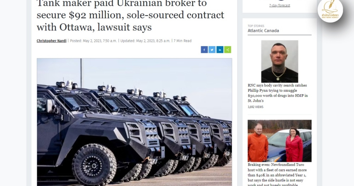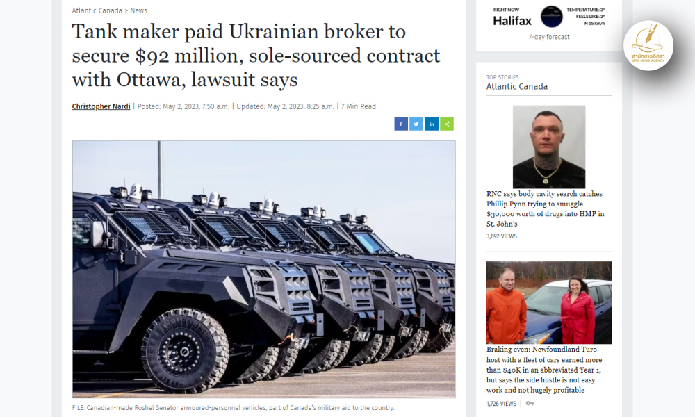 ส่องคดีทุจริตโลก สำนักข่าวอิศรา (www.isranews.org) สัปดาห์นี้ขอเสนอกรณีที่บริษัทด้านความมั่นคงของประเทศแคนาดาที่ชื่อว่าโรเชลหรือ Roshel ถูกกล่าวหาว่าทำผิดกฎหมาย และอาจจะมีการละเมิดต่อกฎหมายต่อต้านการทุจริต เพื่อจะให้ได้รับสัญญากับรัฐบาลแคนาดามูลค่ากว่า 92 ล้านดอลลาร์แคนาดา (2,300,085,332 บาท) ซึ่งรายละเอียดของสัญญานั้นจะเป็นการที่บริษัทจะจัดส่งรถหุ้มเกราะไปให้กับทางรัฐบาลแคนาดา ซึ่งจะส่งไปให้กับประเทศยูเครนต่อไป จามรายละเอียดคำฟ้องที่ฟ้องต่ออดีตผู้บริหารของบริษัท