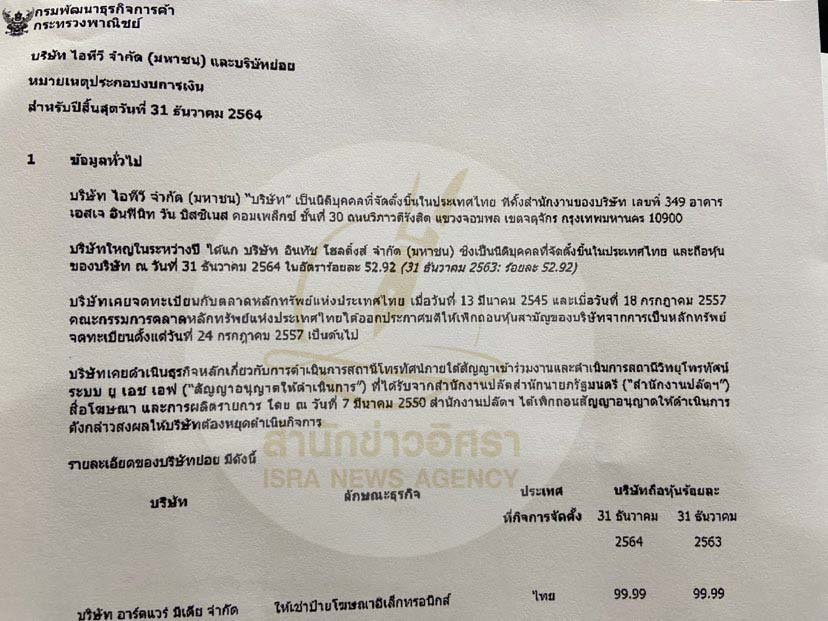 5.ในเอกสารหมายเหตุประกอบงบการเงินรอบปีสิ้นสุด 31 ธ.ค.2564 ระบุ บริษัทใหญ่ระหว่างปี บริษัท อินทัช โฮลดิ้ง จำกัด (มหาชน) ถือหุ้น ในอัตรา 52.92%