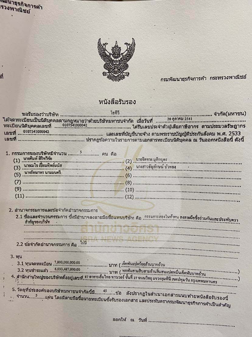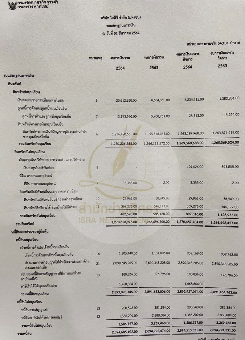 2. บริษัท ไอทีวี ประกอบกิจการสื่อ สถานะของบริษัทฯยังไม่ได้เลิกกิจการ นำส่งงบการเงินทุกปี แต่หยุดดำเนินการ