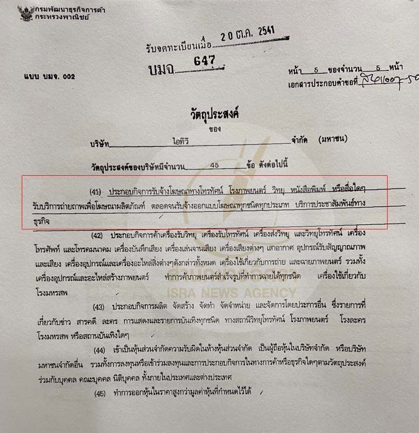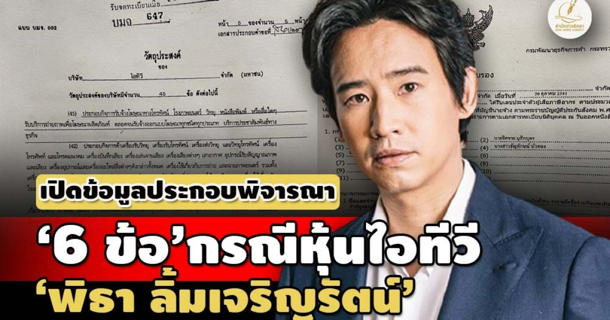 เปิดเอกสารประกอบข้อมูลพิจารณา 6 ข้อ กรณี‘พิธา ลิ้มเจริญรัตน์’หน.พรรคก้าวไกล ถูกร้องถือครอง ไอทีวี 42,000 หุ้น คุณสมบัติต้องห้ามเป็นผู้สมัคร ส.ส. หรือไม่ แจ้งวัตถุประสงค์ 45 ข้อ เกี่ยวข้องกิจการสื่อ 5 ข้อ ขณะที่งบการเงินปี 2564 รายได้ 23.6 ล. หยุดดำเนินงาน ถูกสำนักงานปลัดฯเพิกถอนสัญญาอนุญาต