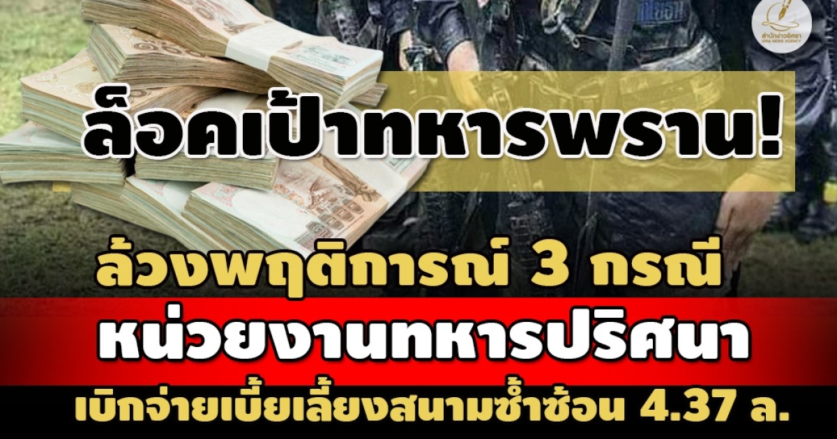 กรณีสำนักข่าวอิศรา (www.isranews.org) ได้รับการเปิดเผยข้อมูลจากแหล่งข่าวในหน่วยงานกองทัพไทย ว่า ในช่วงปี 2565 หน่วยงานในสังกัดทหาร มีปัญหาการเบิกจ่ายเบี้ยเลี้ยงสนามซ้ำซ้อนกัน ของนายสิบ นายทหาร และอาสาสมัครทหาร เป็นจำนวนเงินกว่า 4.37 ล้านบาท