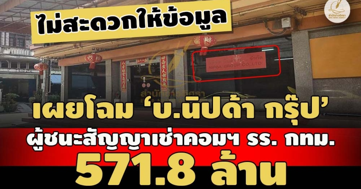ทั้งหมดนี้ คือ ข้อมูลเชิงลึกเพิ่มเติม เกี่ยวกับบริษัท นิปด้า กรุ๊ป จำกัด อีกหนึ่งเอกชนในนามกลุ่มกิจการค้าร่วมเอ็นแอนด์ไอ ผู้ชนะงานเช่าระบบคอมพิวเตอร์พร้อมปรับปรุงห้องคอมพิวเตอร์ของโรงเรียน 437 โรงเรียน จำนวน 598 ห้อง และเช่าระบบคอมพิวเตอร์พร้อมปรับปรุงห้องศูนย์ฝึกอบรมคอมพิวเตอร์และศูนย์ควบคุมระบบเครือข่ายคอมพิวเตอร์สำนักการศึกษา จำนวน 1 แห่ง วงเงิน 571,888,888 บาท ของกรุงเทพมหานคร ที่สำนักข่าวอิศรา ตรวจสอบพบล่าสุด
