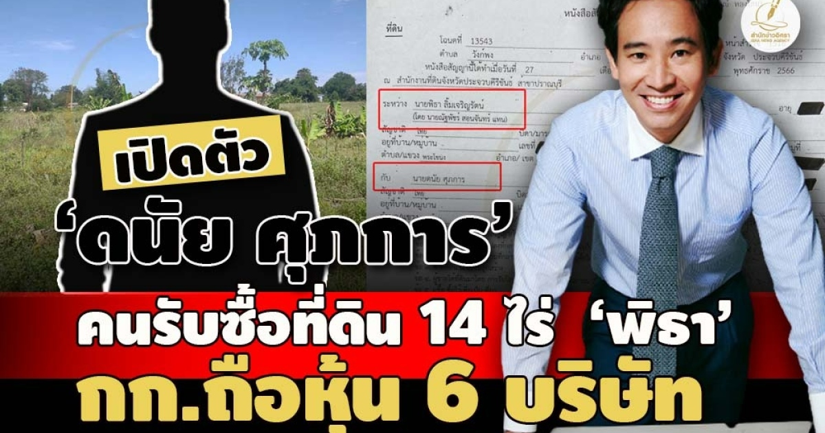 เปิดตัว‘ดนัย ศุภการ’คนรับซื้อที่ดินมรดก 14 ไร่ 6.5 ล้าน อ.ปราณบุรี‘พิธา ลิ้มเจริญรัตน์’ โพรไฟล์ธุรกิจ กก.ถือหุ้น บ. อสังหาฯ ใน อ.หัวหิน 6 แห่ง ก่อนหน้าแจงทำธุรกรรมปกติ ไม่รู้จัก หน.ก้าวไกลมาก่อน เคยเสนอมากกว่า 10 ล. ต่อรองหลายครั้ง