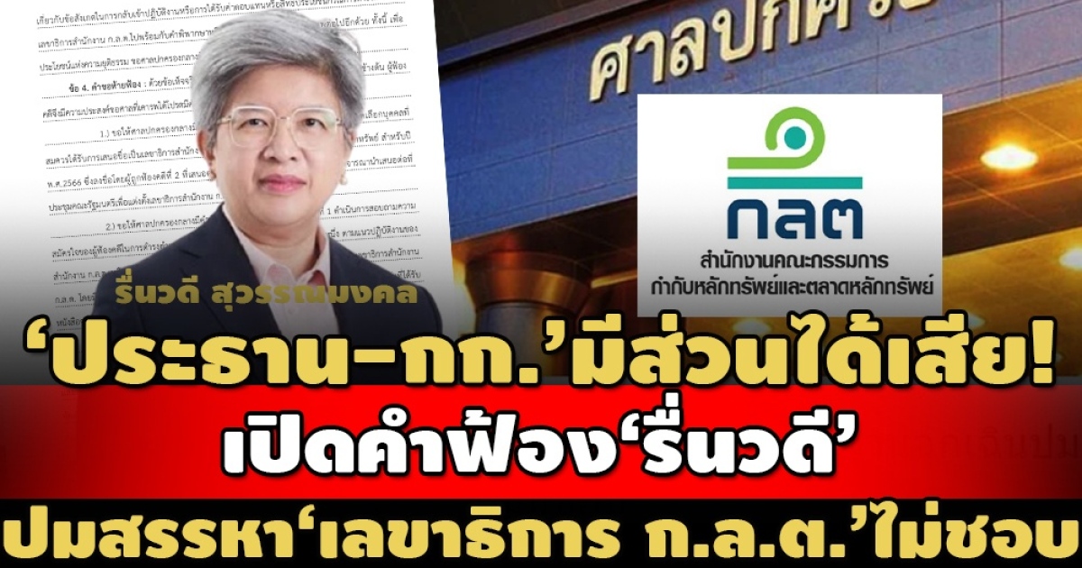 มีส่วนได้เสีย-เป็นปฏิปักษ์!'รื่นวดี'ฟ้อง'ประธาน ก.ล.ต.'ต่อ'ศาลปค.'ปมเลือก‘เลขาธิการ’ขัดกม.