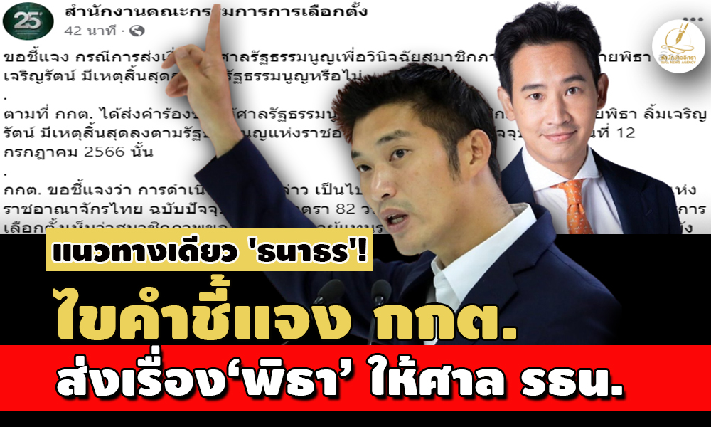 กรณีสำนักงานคณะกรรมการการเลือกตั้ง (กกต.) ได้เผยแพร่คำชี้แจง กรณีการส่งเรื่องให้ศาลรัฐธรรมนูญเพื่อวินิจฉัยสมาชิกภาพ ส.ส. ของนายพิธา ลิ้มเจริญรัตน์ มีเหตุสิ้นสุดลงตามรัฐธรรมนูญหรือไม่