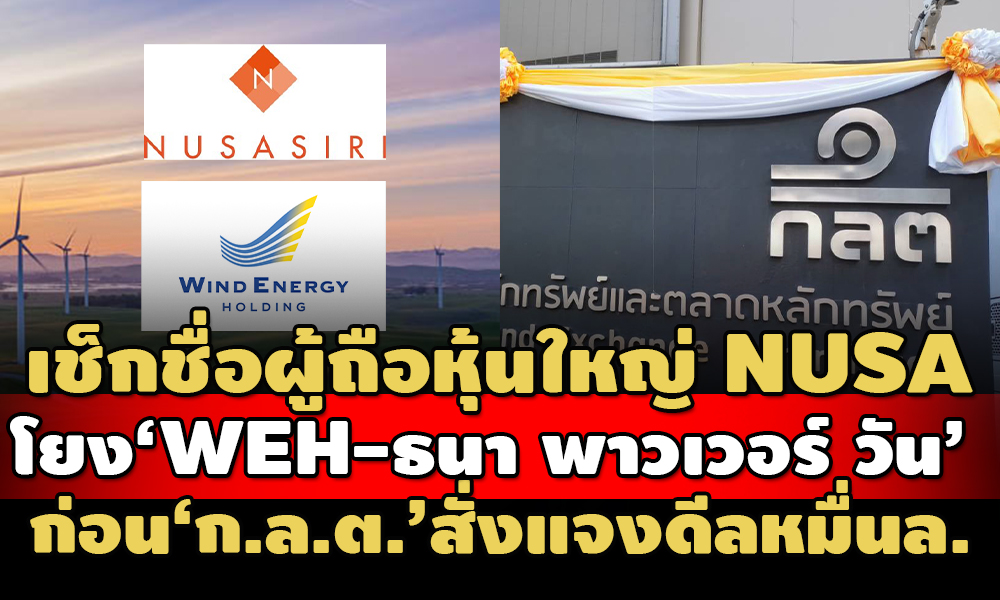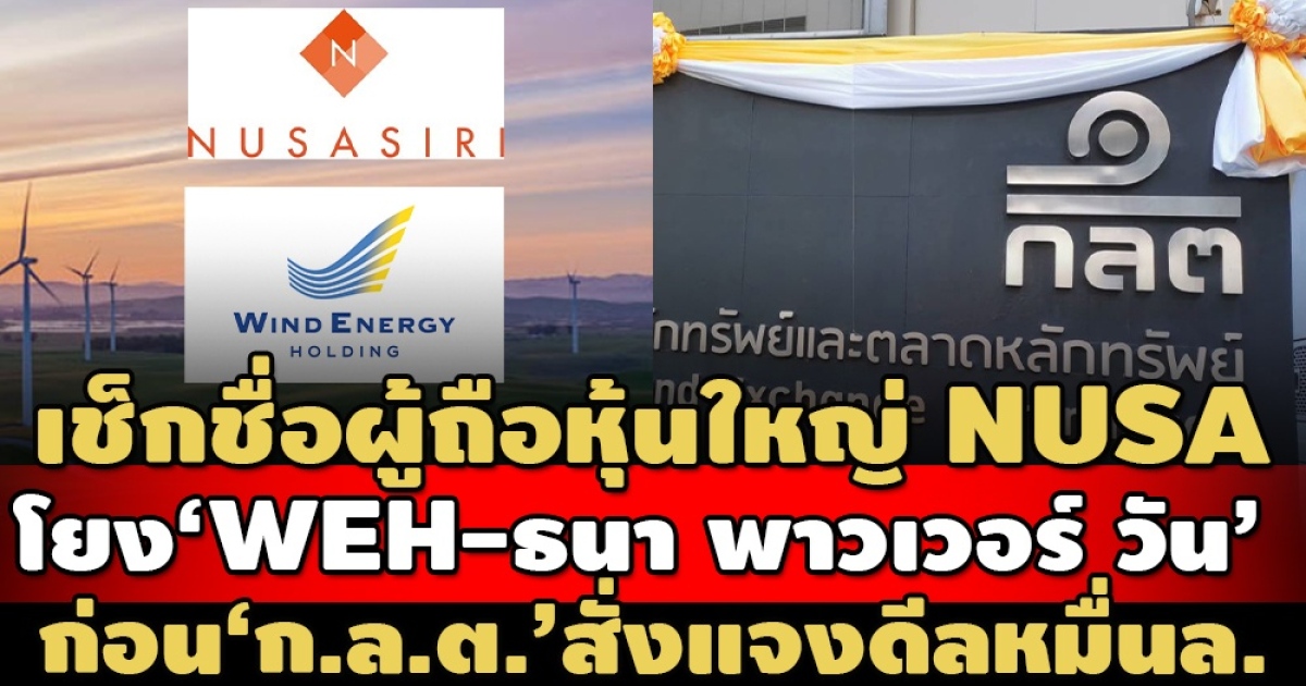 เหล่านี้เป็นข้อมูลและรายชื่อ ‘ผู้ถือหุ้นใหญ่’ ของ NUSA และ บริษัท ธนา พาวเวอร์ วัน จำกัด ซึ่งกำลังทำธุรกรรมซื้อขายหุ้น บริษัท วินด์ เอนเนอร์ยี่ โฮลดิ้งฯ มูลค่า 11,748 ล้านบาท โดยใช้วิธีการแลกเปลี่ยน (Share Swap) ก่อนที่ ก.ล.ต.จะออกคำสั่งให้ NUSA ชี้แจงและปรับปรุงข้อมูลการคำนวณขนาดมูลค่าการซื้อหุ้น WEH ให้ครบถ้วน ถูกต้อง!
