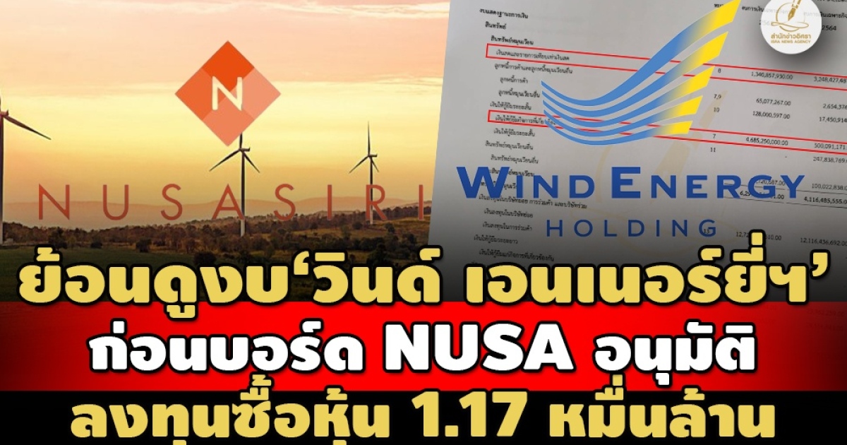 สืบเนื่องจากกรณีที่เมื่อวันที่ 17 ก.ค.2566 บมจ.ณุศาศิริ (NUSA) แจ้งตลาดหลักทรัพย์ฯ ว่า คณะกรรมการบริษัทฯ เมื่อวันที่ 16 ก.ค.2566 มีมติอนุมัติลงทุนซื้อหุ้นสามัญ บริษัท วินด์ เอนเนอร์ยี่ โฮลดิ้ง จำกัด (WEH) ไม่เกิน 29,008,091 หุ้น หรือคิดเป็น 26.65% ของจำนวนหุ้นที่จดทะเบียนและชำระแล้วของ WEH
