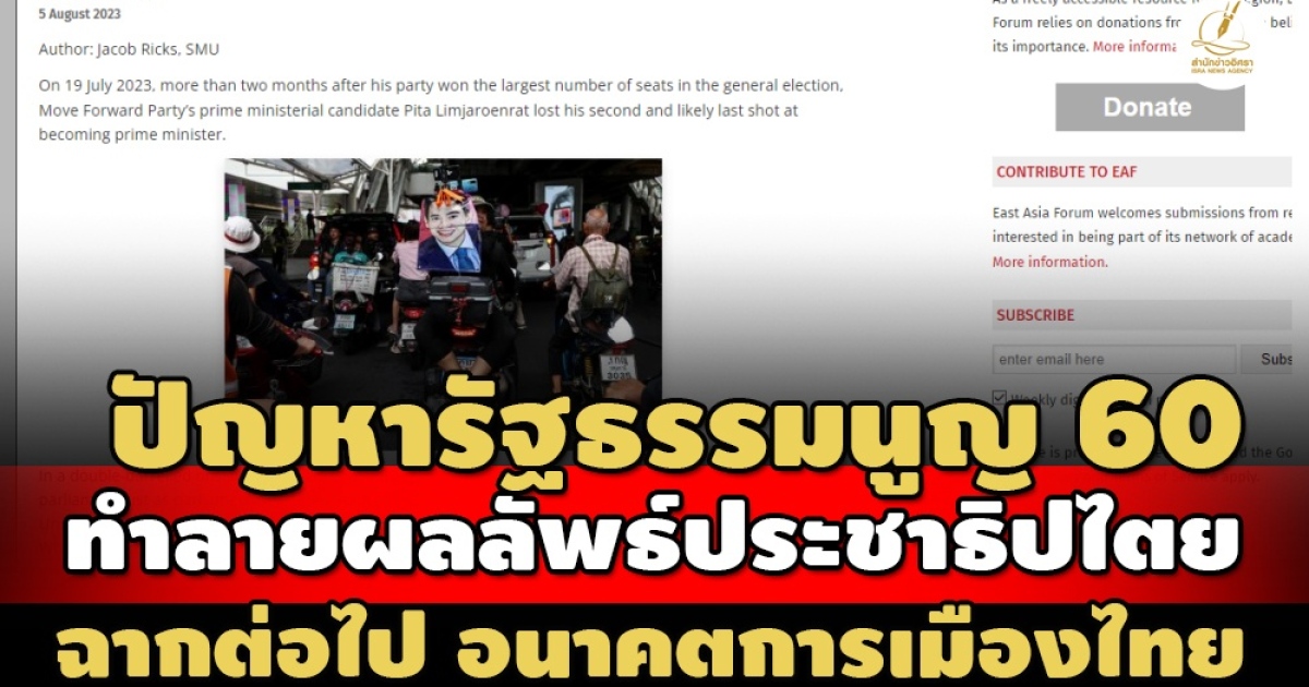 เรียบเรียงจาก:https://www.eastasiaforum.org/2023/08/05/thailands-constitution-works-as-intended-to-frustrate-democratic-outcomes/
