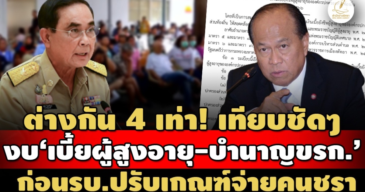 “…เมื่อเปรียบเทียบเงินอุดหนุน ‘เบี้ยยังชีพผู้สูงอายุ’ ในปี 2566 สำหรับผู้สูงอายุประมาณ 11 ล้านคน ซึ่งอยู่ที่ 80,457.20 ล้านบาท กับการจัดสรร ‘งบบำนาญข้าราชการ’ ในปีงบ 2566 สำหรับข้าราชการบำนาญประมาณ 8 แสนคน ซึ่งมีวงเงิน 322,790 ล้านบาท พบว่าตัวเลขวงเงินงบประมาณที่ได้รับการจัดสรรแตกต่างกันถึง 4 เท่าตัว…”