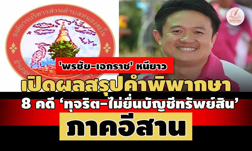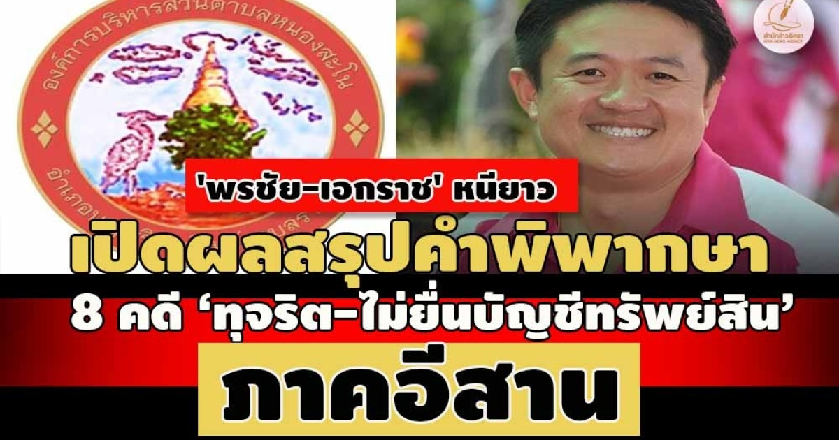 สำนักงาน ป.ป.ช.ภาค 3 แถลงผลสรุปคำพิพากษา 8 คดี 'ทุจริต-ไม่ยื่นบัญชีทรัพย์สิน' ภาคอีสาน รอลงอาญาเพียง 'พรชัย โควสุรัตน์' อดีตนายก อบจ.อุบลฯ ราชธานี -'เอกราช สูงสง่า' อดีตนายก อบต.หนองสะโน' หลบหนียาวยังไม่กลับ