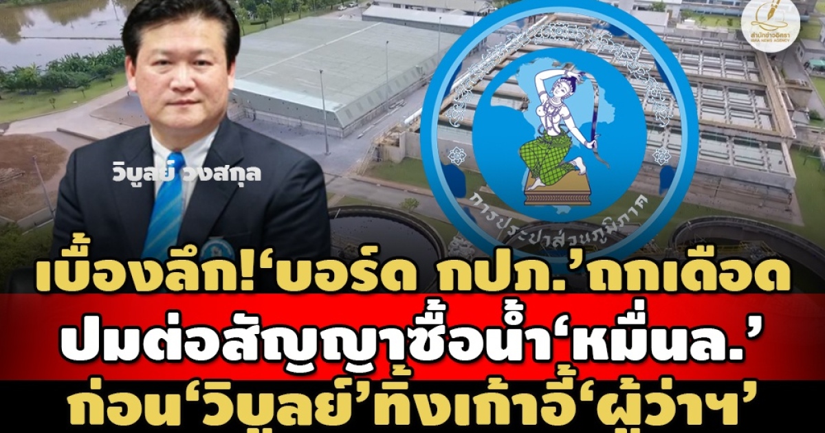 เหล่านี้เป็นเนื้อหาสาระและบรรยากาศในการประชุมคณะกรรมการ กปภ. เมื่อวันที่ 17 ส.ค.ที่ผ่านมา ก่อนที่ในอีก 8 วันถัดมา ‘วิบูลย์ วงสกุล’ จะยื่นหนังสือลาออกจากตำแหน่ง ‘ผู้ว่าฯ กปภ.’ และยังต้องติดตามกันต่อไปว่า การ ‘ต่อสัญญา’ โครงการเอกชนร่วมลงทุนปรับปรุงขยายการประปาปทุมธานี-รังสิต มูลค่านับหมื่นล้านบาท กับเอกชนรายเดิม จะลงเอยอย่างไร?