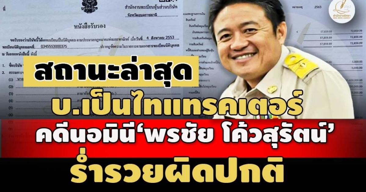 ตามเช็กสถานะล่าสุด บ.เป็นไทแทรคเตอร์ คดีนอมินี ‘พรชัย โค้วสุรัตน์’ อดีตนายก อบจ.อุบลฯ ถือครองที่ดิน 53 แปลง 640 ไร่ ก่อน ป.ป.ช.ชี้มูลรวยผิดปกติ 93.4 ล. ตอนนี้ถูกสรรพากรส่งหนังสืออายัดห้ามจดทะเบียนเสร็จชำระบัญชี 12 ครั้ง พบจดทะเบียน เปลี่ยนชื่อ-วัตถุประสงค์ - กก.-ผู้ถือหุ้น นับสิบหน ส่งงบการเงินครั้งสุดท้ายปี 2563 ไม่มีรายได้ สินทรัพย์แค่ 57,859.99 บ. หนี้สิน 35.5 ล. ขาดทุนสะสม 40.5 ล.