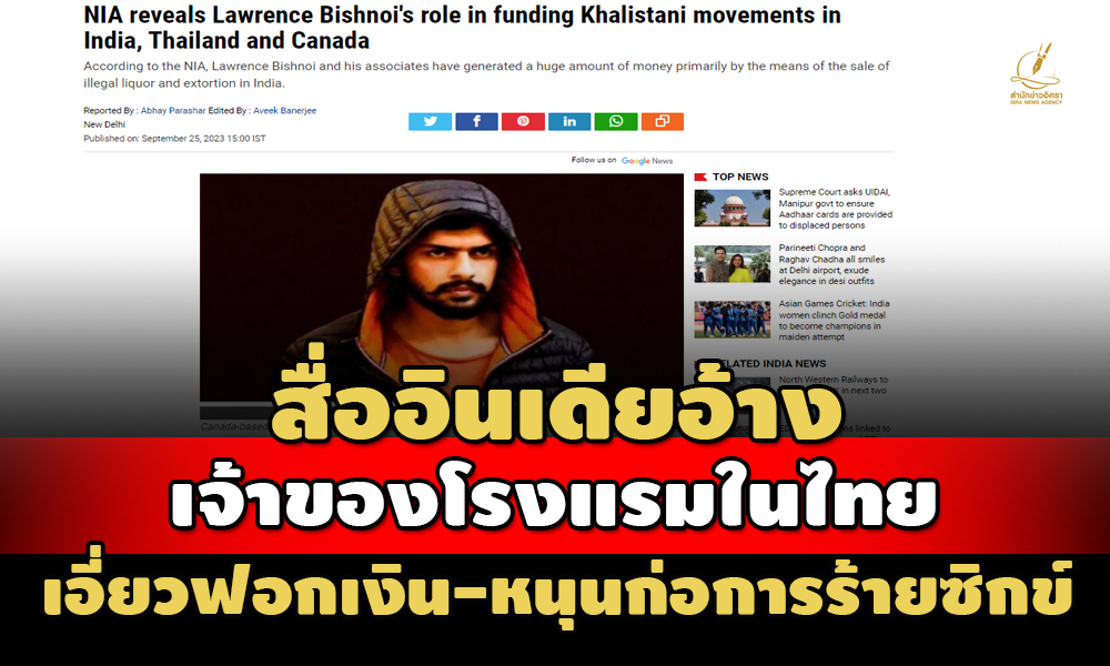 สำนักข่าวอินเดียทีวี รายงานข่าวความคืบหน้าครั้งใหญ่ กรณีที่สำนักงานสอบสวนแห่งชาติอินเดีย (NIA) ได้สืบสวนจนสามารถเปิดโปงนายลอว์เรนซ์ บิชนอย มาเฟียซึ่งมีบทบาทในการสนุบสนุนเงินทุนกิจกรรมก่อการร้ายของขบวนการคาลิสถาน (Khalistan) ซึ่งเป็นกลุ่มแบ่งแยกดินแดนชาวชาวซิกข์ โดยเงินทุนนี้มาจากทั้งการกรรโชกทรัพย์ และการฟอกเงินซึ่งเกี่ยวกับประเทศอินเดีย,ประเทศไทย และประเทศแคนาดา