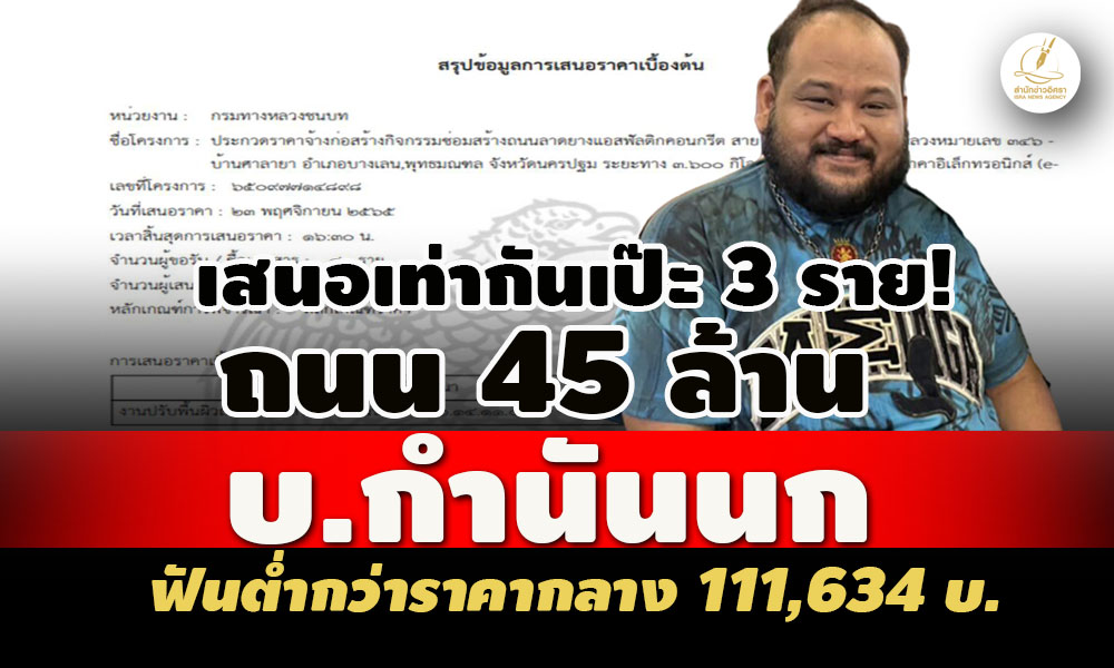 - ไส้ในรับเหมาอีกโครงการ! บ.กำนันนก ฟัน 3 ล. ต่ำกว่าราคากลาง 1.5 ล.