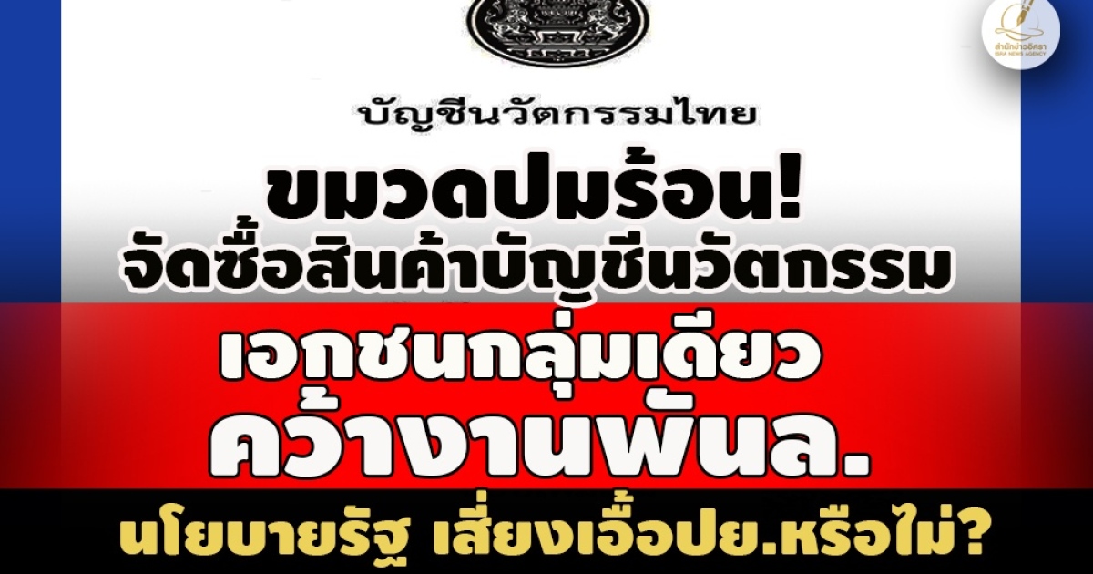 ISRA-INVESTIGATIVE : ประเด็นตรวจสอบข้อมูลเชิงลึกงานจัดซื้อจัดจ้างสินค้าในบัญชีนวัตกรรมไทย ที่ขึ้นทะเบียนไว้กับสำนักงบประมาณ อันเป็นมาตรการส่งเสริมและผลักดันงานวิจัยไปสู่การใช้ประโยชน์เชิงพาณิชย์ ตามนโยบายของรัฐบาล ที่หากหน่วยงานของรัฐมีความต้องการจัดซื้อจัดจ้างตรงตามบัญชีสามารถดำเนินการโดยวิธีการเจาะจงได้ ซึ่งเริ่มดำเนินการมาตั้งแต่สมัยรัฐบาลพล.อ.ประยุทธ์ จันทร์โอชา อดีตนายกรัฐมนตรี