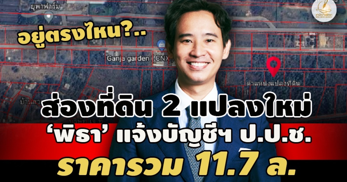 "...ในการแจ้งทรัพย์สินล่าสุดของนายพิธา ส่วนของรายการเงินลงทุน ไม่มีการแจ้งการถือหุ้นบริษัทไอทีวี จำกัด มหาชน จำนวน 42,000 หุ้น มูลค่า 44,100 บาท แล้ว และในรายการที่ดิน ไม่ปรากฏที่ดิน ต.วังพงก์ อ.ปราณบุรี จ.ประจวบคีรีขันธ์ มูลค่า 18,000,000 บาท รวมถึงไม่ปรากฎหนี้ค้ำประกันธนาคารยูโอบี จำกัด มูลค่า 19,932,762 บาท แต่มีที่ดินเพิ่ม 2 แปลงในจ.ปทุมธานี และเชียงใหม่ น่าสนใจว่า ที่ดินเพิ่มใหม่ 2 แปลงใน จ.ปทุมธานี และเชียงใหม่ มีรายละเอียดเป็นอย่างไร..."