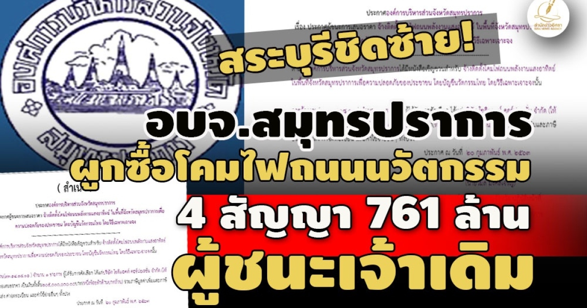 - ยอดพุ่ง 454 ล.! อบจ.สระบุรีซื้อโคมไฟถนนนวัตกรรม 5 สัญญา บ.กลุ่มเดิมรับซอง-แต่ไม่ยื่นแข่ง