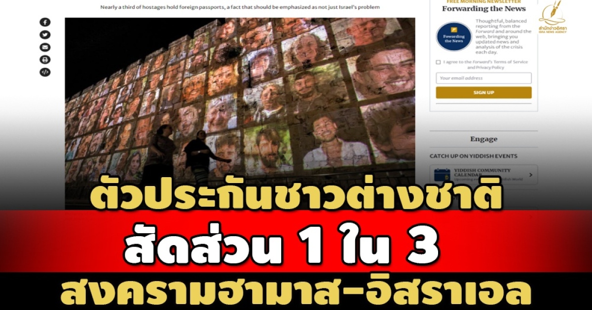 เป็นที่ทราบกันดีว่าในเหตุการณ์สู้รบระหว่างกลุ่มฮามาสและอิสราเอล ยอดชาวต่างชาติที่ประสบความสูญเสียเป็นอันดับต้นๆจากเหตุการณ์เป็นยอดของแรงงานไทย เพราะตามรายงานของทางการอิสราเอลระบุว่าจนถึงตอนนี้ (13 พ.ย. 2566) มีคนไทยเสียชีวิต 39 ราย รักษาตัวอยู่ในโรงพยาบาล 4 ราย และถูกจับเป็นตัวประกัน 25 ราย