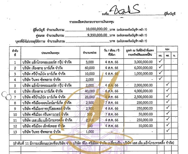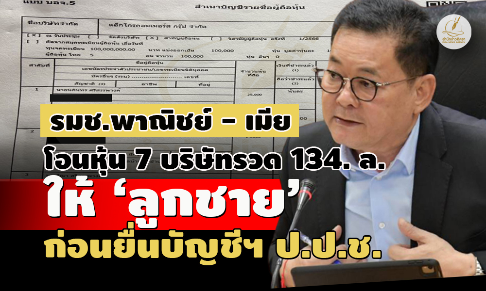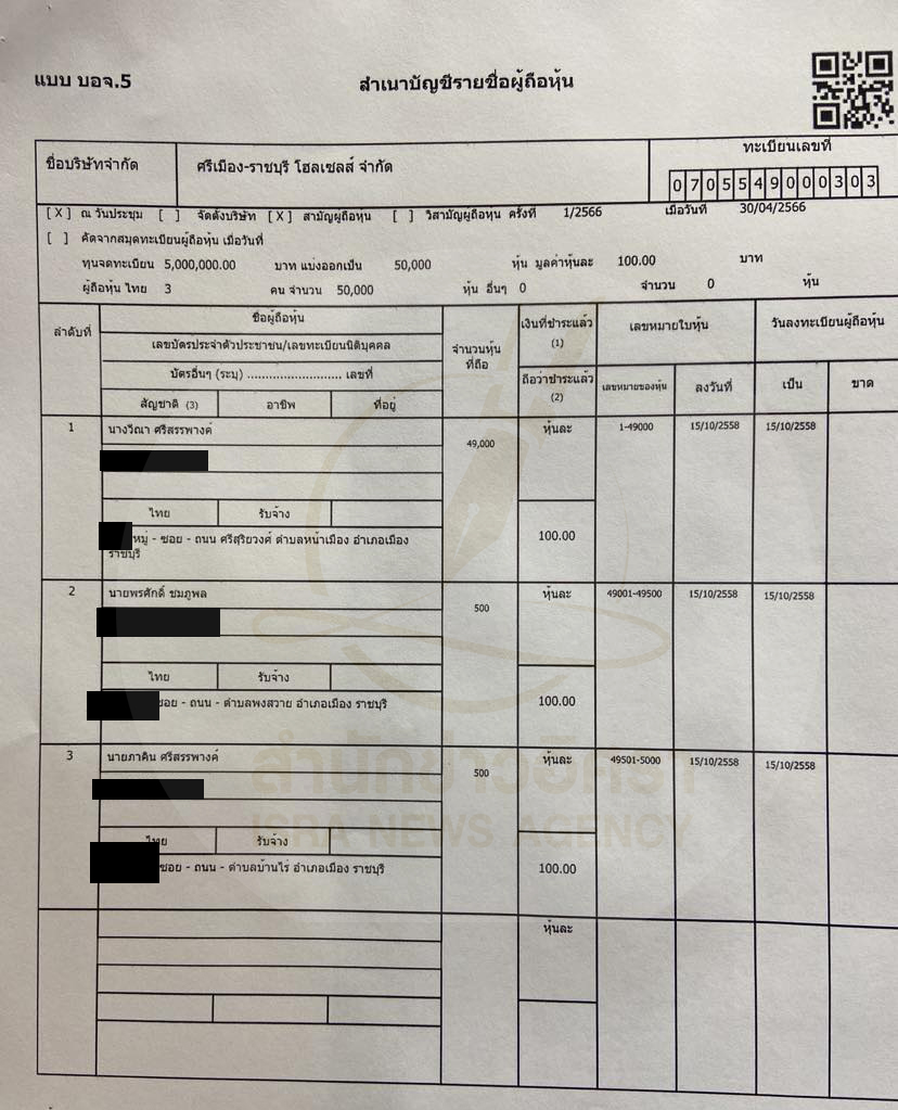 บัญชีรายชื่อผู้ถือหุ้นธุรกิจของ ‘นภินทร’ ภรรยา และบุตร