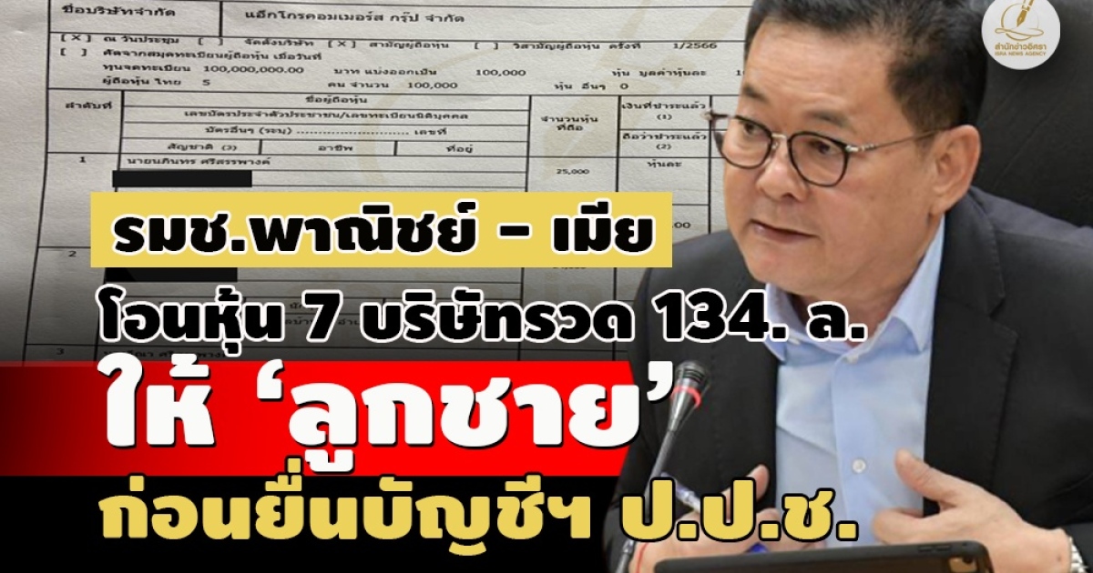 เจาะลึก ‘นภินทร ศรีสรรพางค์’ รมช.พาณิชย์ - เมีย โอนธุรกิจเครือตลาดศรีเมือง 7 บริษัทรวดเดียว 940,500 หุ้น มูลค่า 134.5 ล้าน ให้ ‘ภาคิน’ ลูกชายวัย 27 ปี ก่อนยื่นบัญชีทรัพย์สิน ป.ป.ช. ตอนเข้ารับตำแหน่ง เลี่ยงปม กม.ถือครองเกิน 5% ?