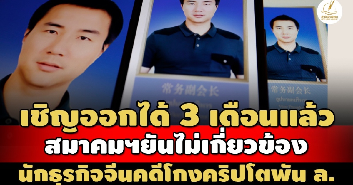 • เชิญออกไป 3 เดือนแล้ว! เปิดตัวสมาคมชาวจีนในไทย แจงไม่เกี่ยวข้องนักธุรกิจคดีโกงคริปโตพันล.