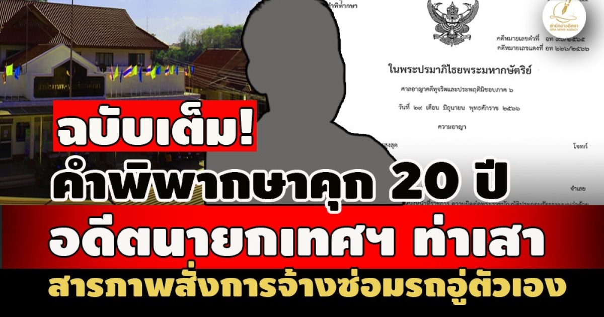 - คุก 20 ปี! อดีตนายกเทศฯ ท่าเสา อุตรดิตถ์ สารภาพสั่งการจ้างซ่อมรถอู่ตัวเอง